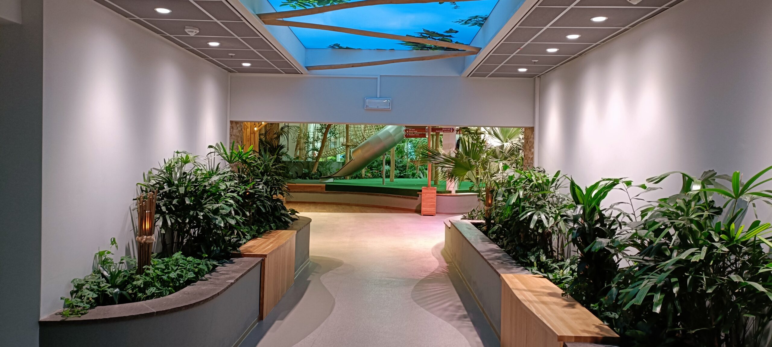In de Market Dome van Center Parcs Eifel hebben we de volledige binnentuin van verlichting voorzien. Inmiddels zijn de planten nóg weelderiger dan bij plaatsing – een bewijs van duurzame kwaliteit.