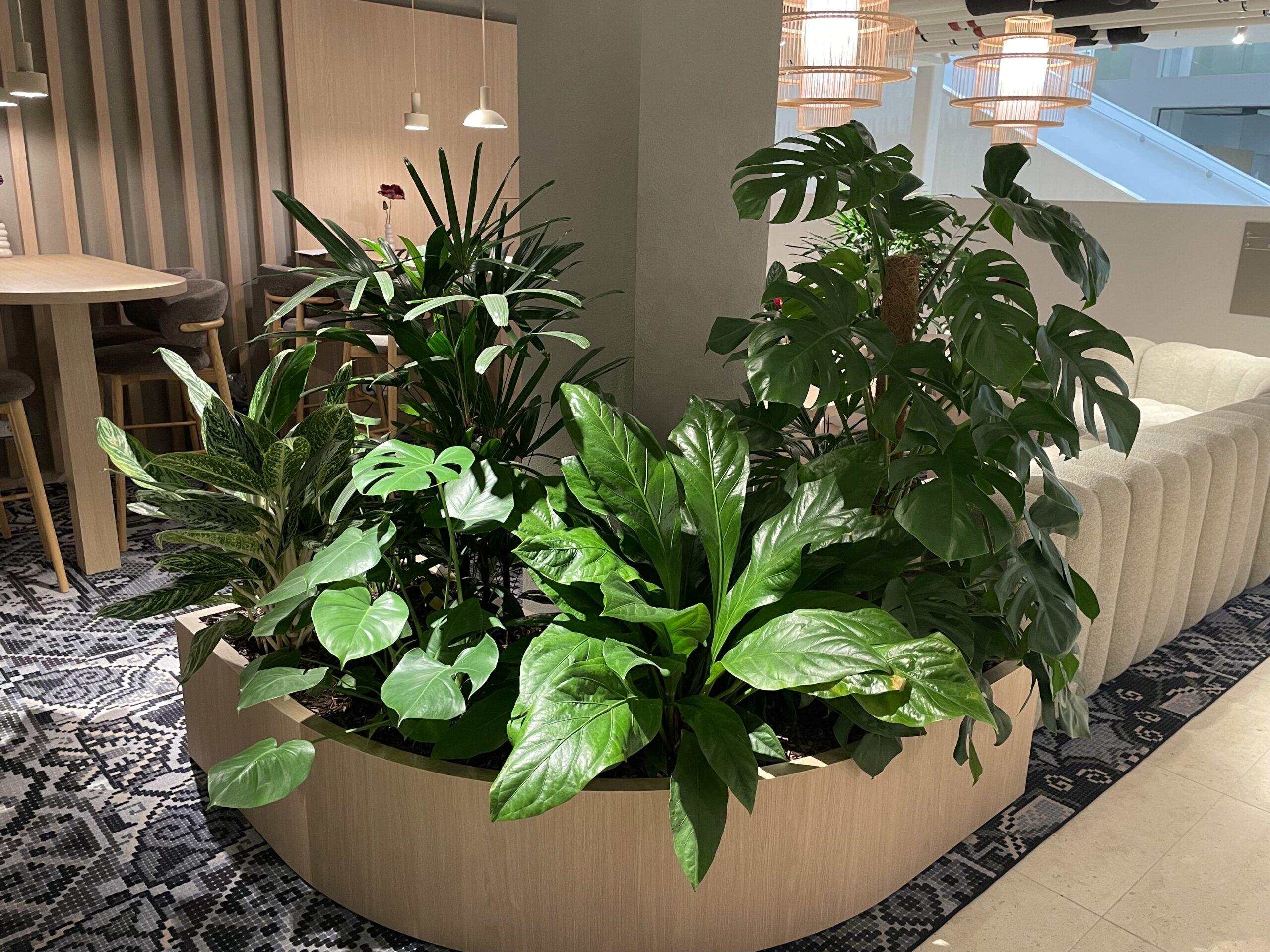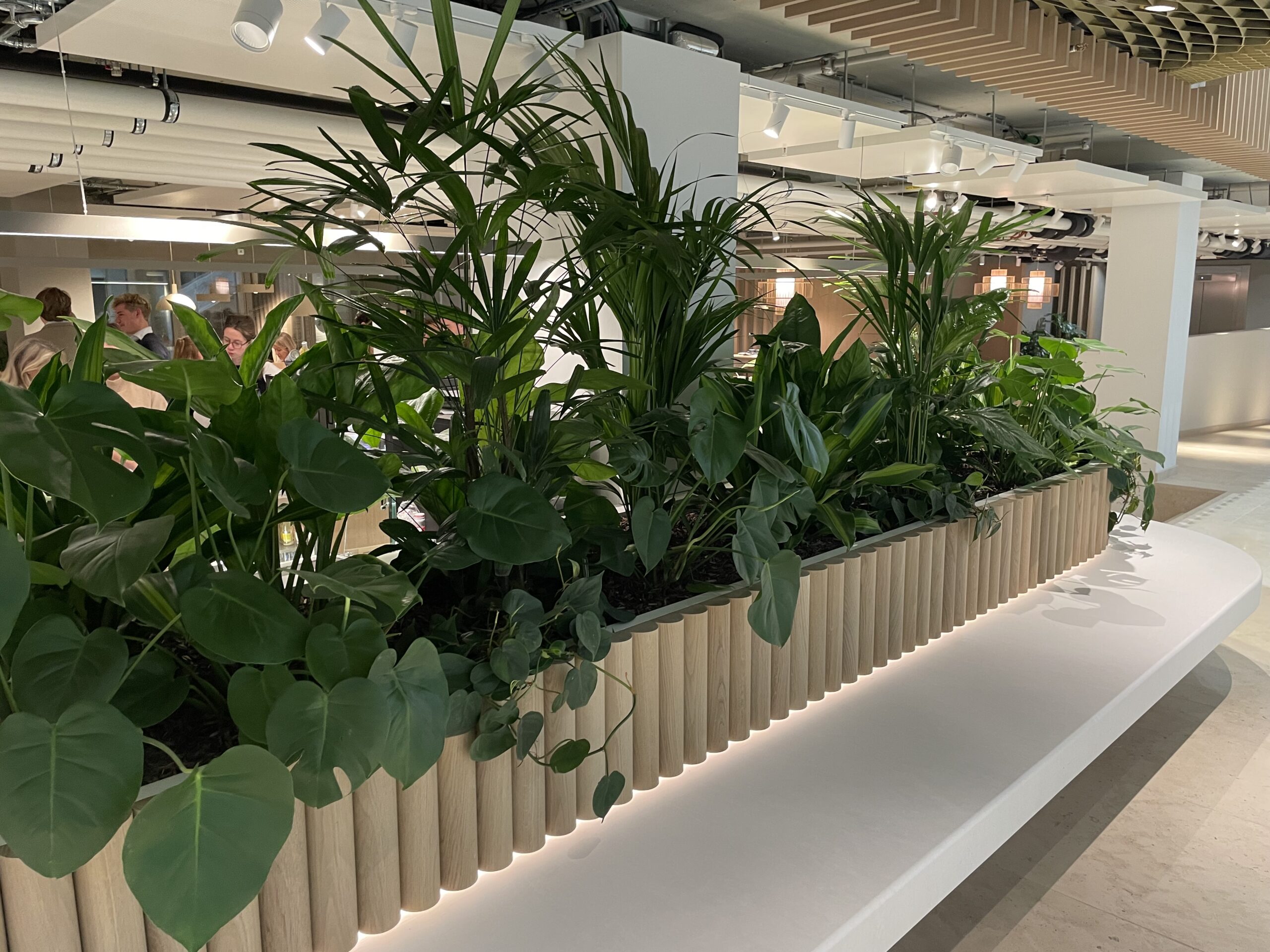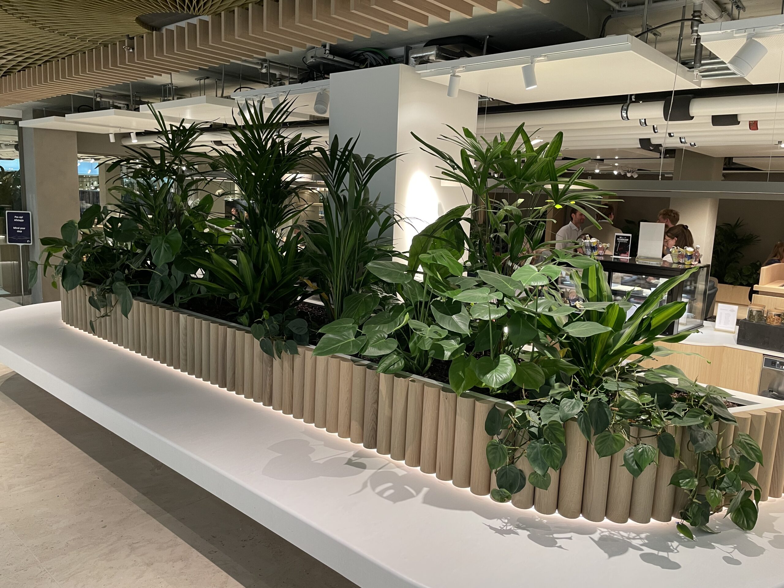 Deze locatie ontvangt helemaal geen natuurlijk licht. Green Stories vroeg ons te helpen met de planten het juiste licht te geven.